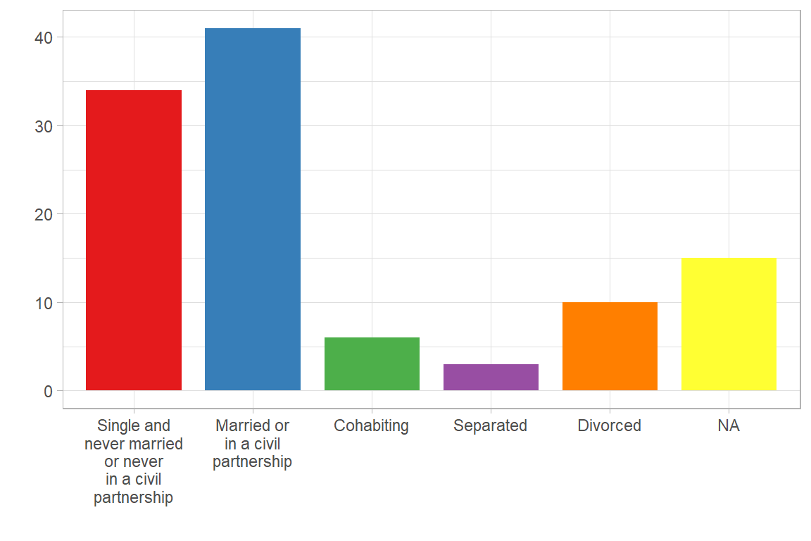 | Married or in a civil partnership | 41 | 0.38 | 0.44 | 0.80 |
