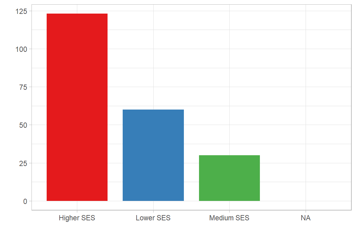 Then it is easy to assign the respondents socioeconomic status to three groups, consisting of “Higher SES”, “Medium SES”, or “Lower SES” as shown in lst-code-ses-3g.