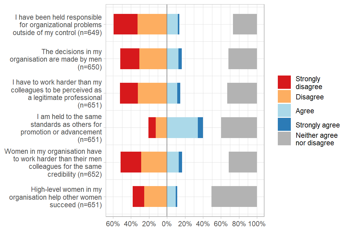 Women in my organisation have to work harder than their men colleagues for the same credibility | Disproportionate constraints - Unequal standards |