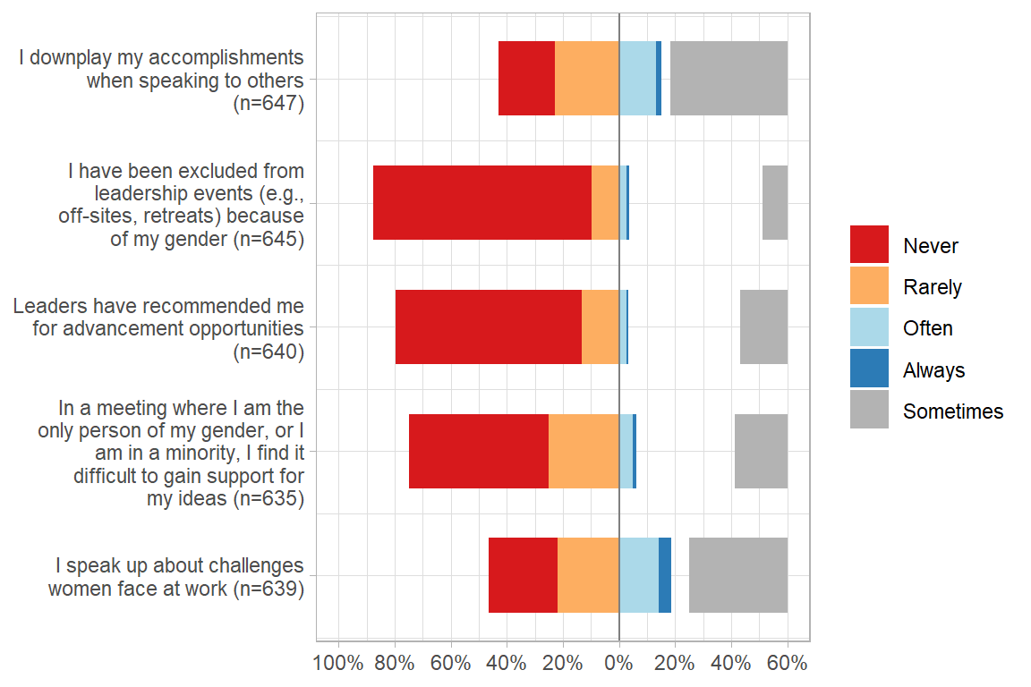 I have been excluded from leadership events (e.g., off-sites, retreats) because of my gender | Insufficient support - exclusion |